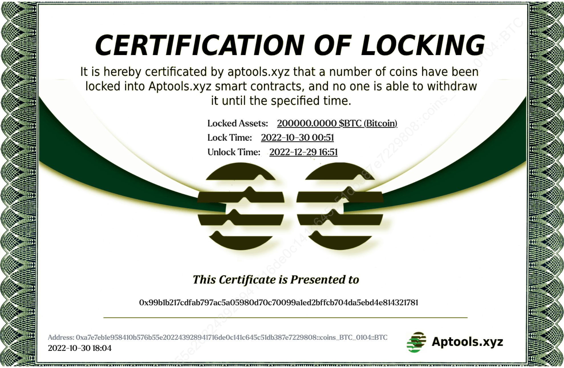 - All coins are locked up in smart contracts on Aptos blockchain.